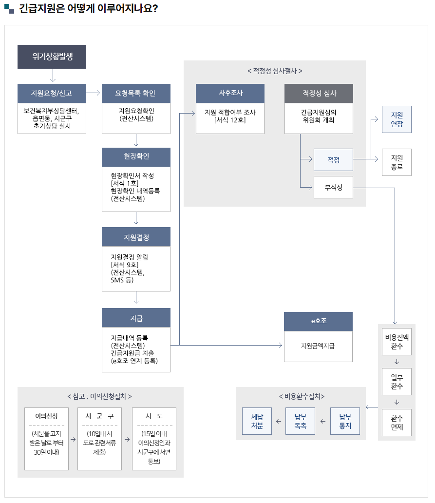 ※ 긴급 상황임이 인정되면 선지원 후심사 방식으로 긴급 지원이 먼저 이루어집니다.