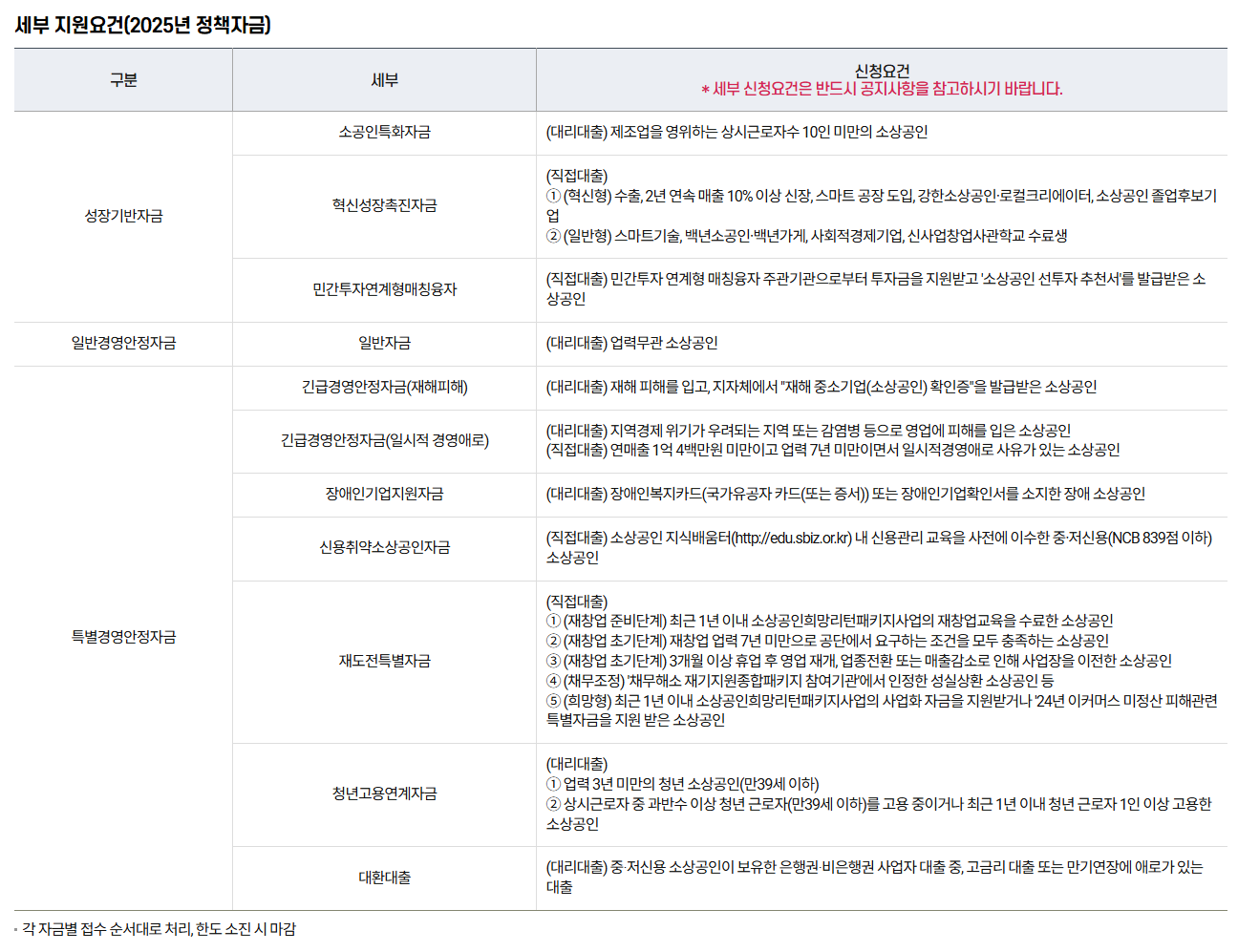 2025년 주요 정책자금 구분